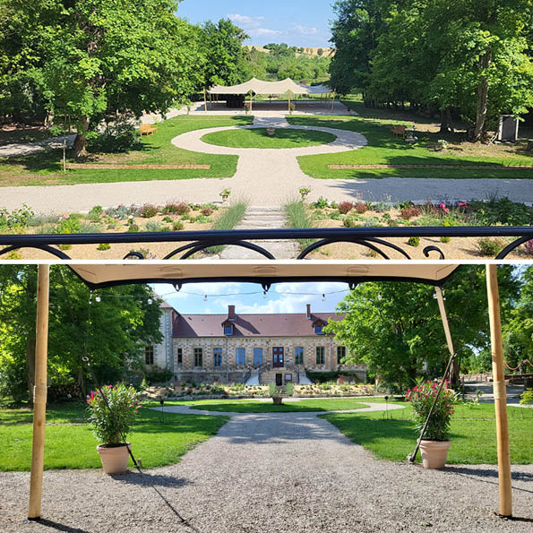 Ci-dessous, la transformation de la pâture devant le château en espace de réception.
